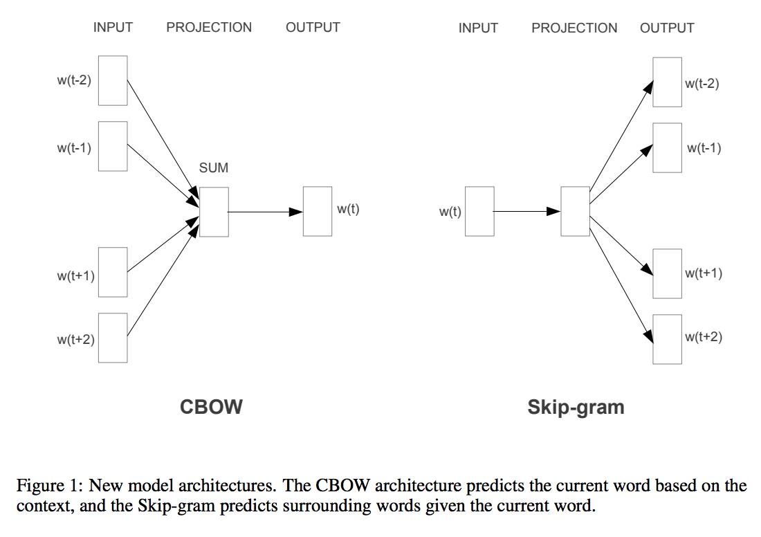 출처 : https://arxiv.org/pdf/1301.3781.pdf Tomas Mikolov, Ilya Sutskever, Kai Chen, Greg Corrado, and Jeffrey Dean. Distributed Representations of Words and Phrases and their Compositionality. In Proceedings of NIPS, 2013.