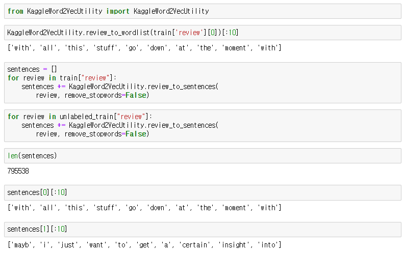 전처리를 거쳐 파싱된 문장의 목록으로 모델을 학습시킬 준비가 되었다.