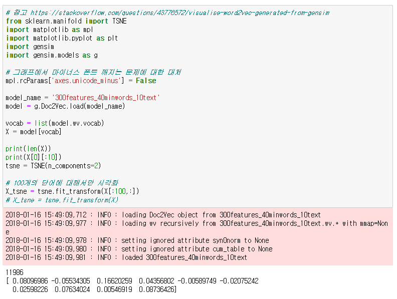 Word2Vec으로 벡터화 한 단어를 t-SNE 를 통해 시각화