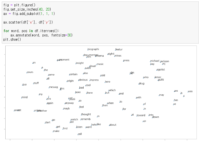 마이클 - 잭슨 과 같이 있는 것,,, 등 단어 주변을 보면 유사한 것들 끼리 묶인 것을 볼 수 있다..