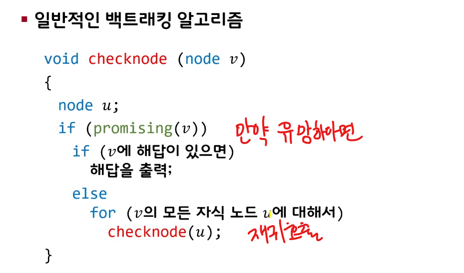 - 방문 중인 노드에서 하위 노드가 해답을 발견할 가능성이 있으면 유망(promising)