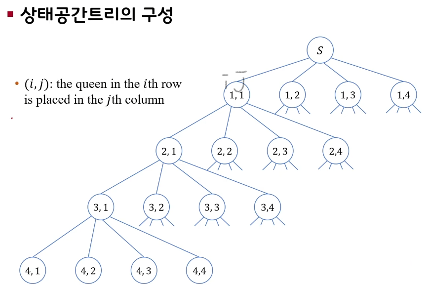 - 상태공간: 해답을 탐색하기 위한 탐색 공간