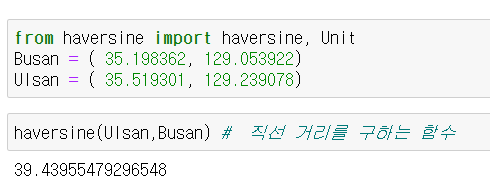haversine(Ulsan,Busan) # 직선 거리를 구하는 함수