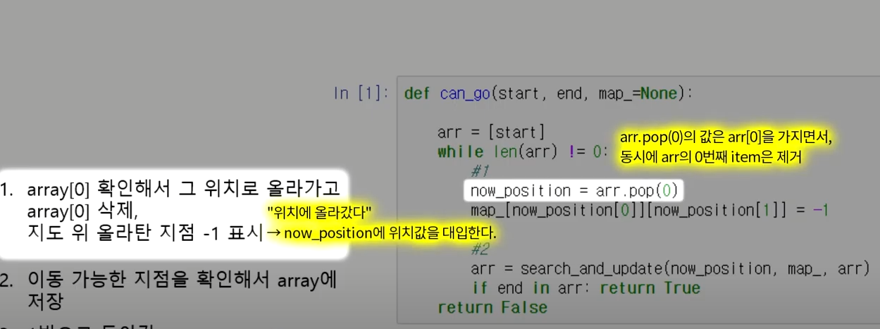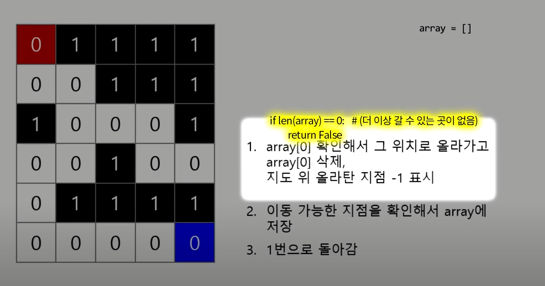 이 알고리즘대로 하면 목적지에 갈 수 있는지 알고리즘을 수행하게 됨
