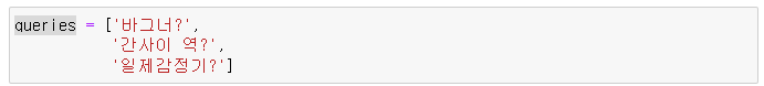 그리고 텍스트 유사도를 구할 질문들을 불러옵니다.
