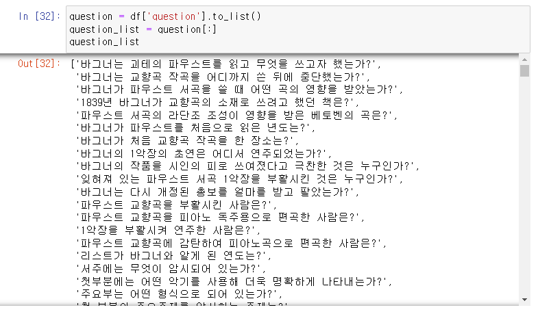 그리고 텍스트 유사도를 구할 질문들을 불러옵니다.