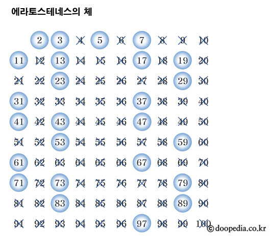 [네이버 지식백과] 에라토스테네스의 체 [Eratosthenes' sieve] (두산백과 두피디아, 두산백과)