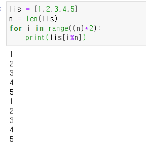 여기서 중요한 수는 다름아니라 i%n 이다.