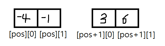 [pos][1] 과 [pos+1][0] 의 구간이 겹치는지 확인하면 된다.