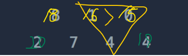 삼각형의 정보가 담긴 배열 triangle이 매개변수로 주어질 때, 거쳐간 숫자의 최댓값을 return 하도록 solution 함수를 완성하세요.