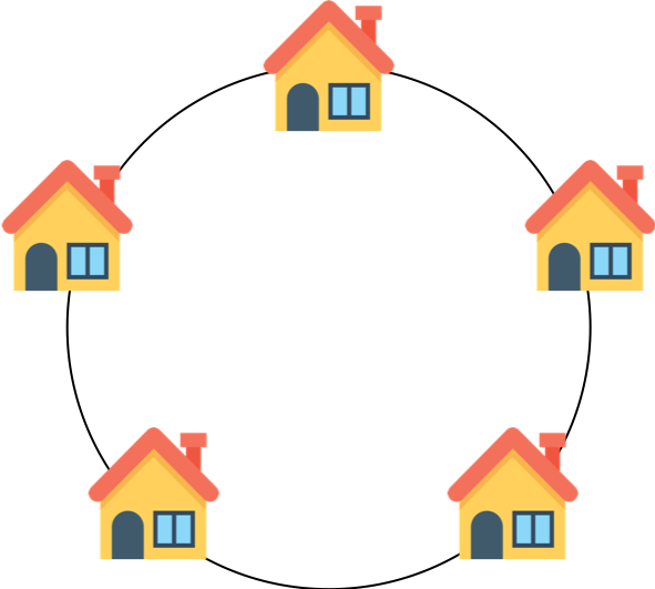 도둑이 어느 마을을 털 계획을 하고 있습니다. 이 마을의 모든 집들은 아래 그림과 같이 동그랗게 배치되어 있습니다.