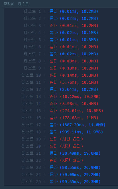 나의 풀이 (첫풀이 - 48점, 시간초과)