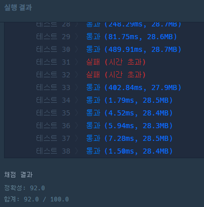 세번째 풀이 (92점 / 25,27,31,32 시간초과)