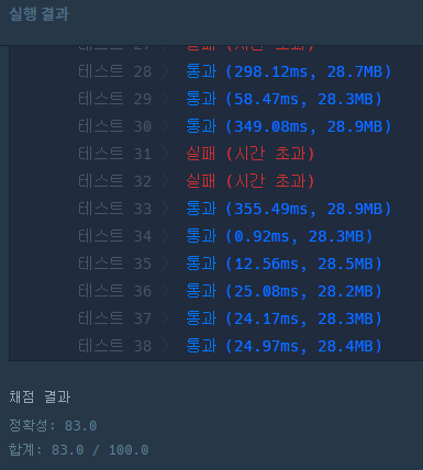 세번째 풀이 (92점 / 25,27,31,32 시간초과)