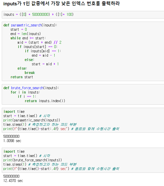 탐색 시간을 비교했을때도 이분탐색을 이용한 파라매틱 서치가 가장빠르다는 것을 알 수 있다.