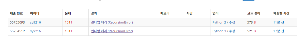 나의 풀이 (첫번째 풀이, 런타임에러, DFS로 접근)
