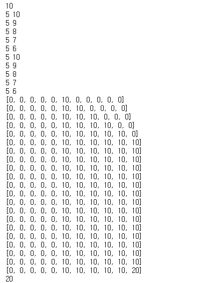 둘째 줄부터 N개의 줄에 Ti와 Pi가 공백으로 구분되어서 주어지며, 1일부터 N일까지 순서대로 주어진다. (1 ≤ Ti ≤ 5, 1 ≤ Pi ≤ 1,000)