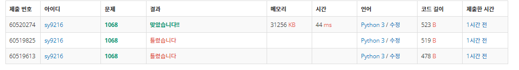 처음에 함수 안에서 if idx != -1: 를 안넣어줘서 틀렸었다.