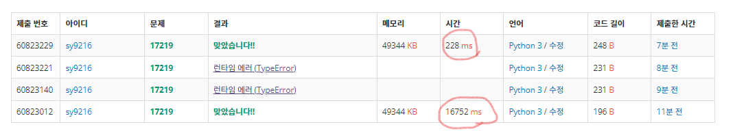 시간이 너무 오래 걸려서 코드 수정