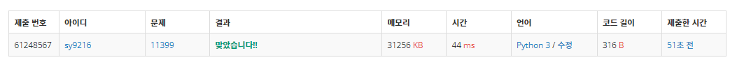11399번: ATM