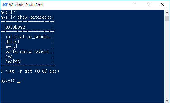 MySQL을 설치한 직후 root 계정에 암호가 지정되어 있지 않은 경우 -p 옵션은 생략한다.