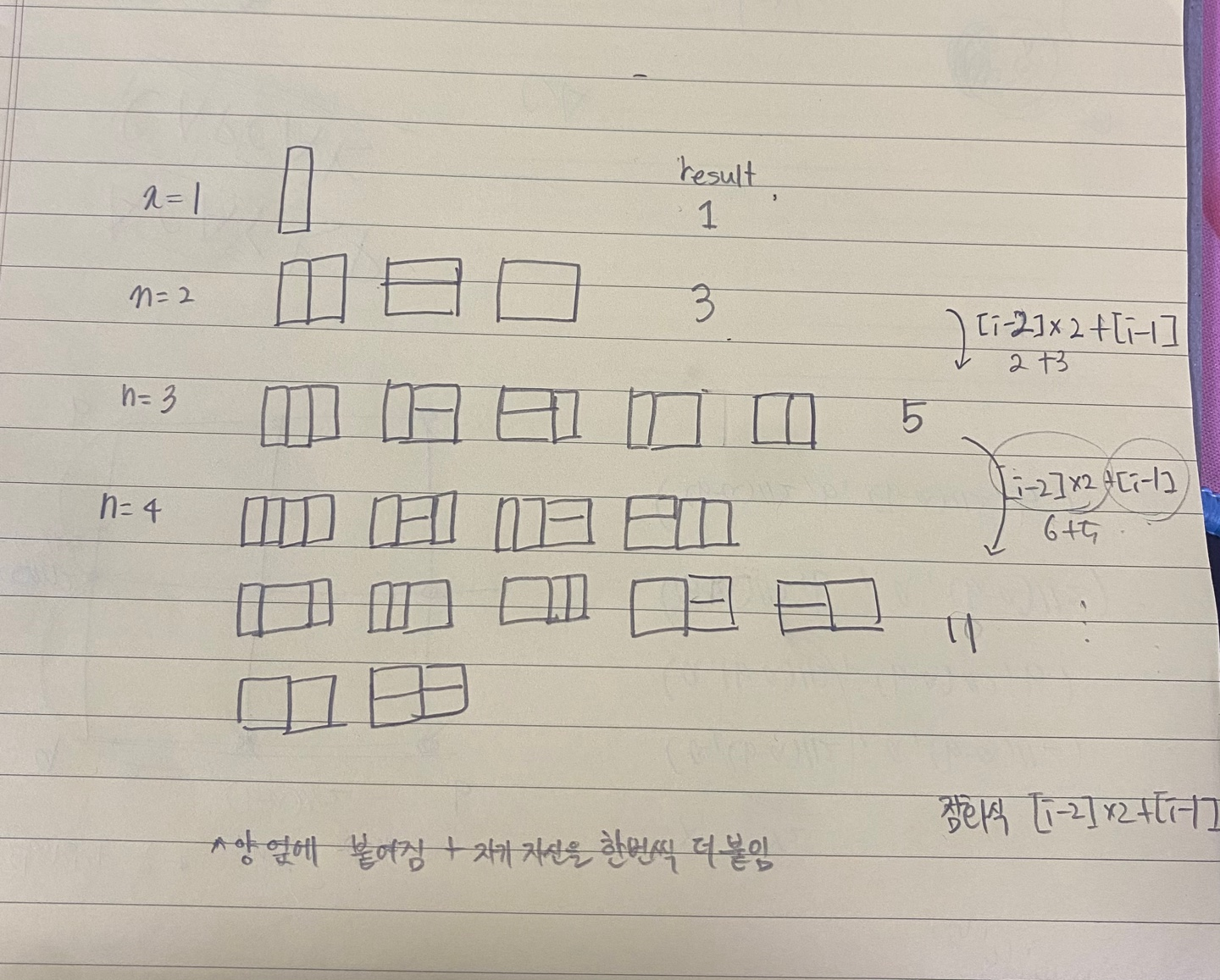 dp[i] = dp[i-2] * 2 + dp[i-1]