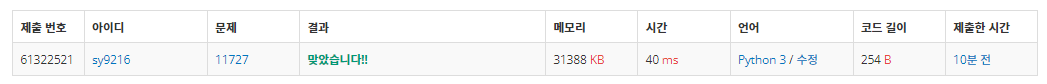 문제 사이트: https://www.acmicpc.net/problem/11727