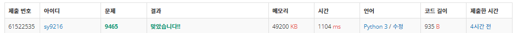 문제 사이트: https://www.acmicpc.net/problem/9465