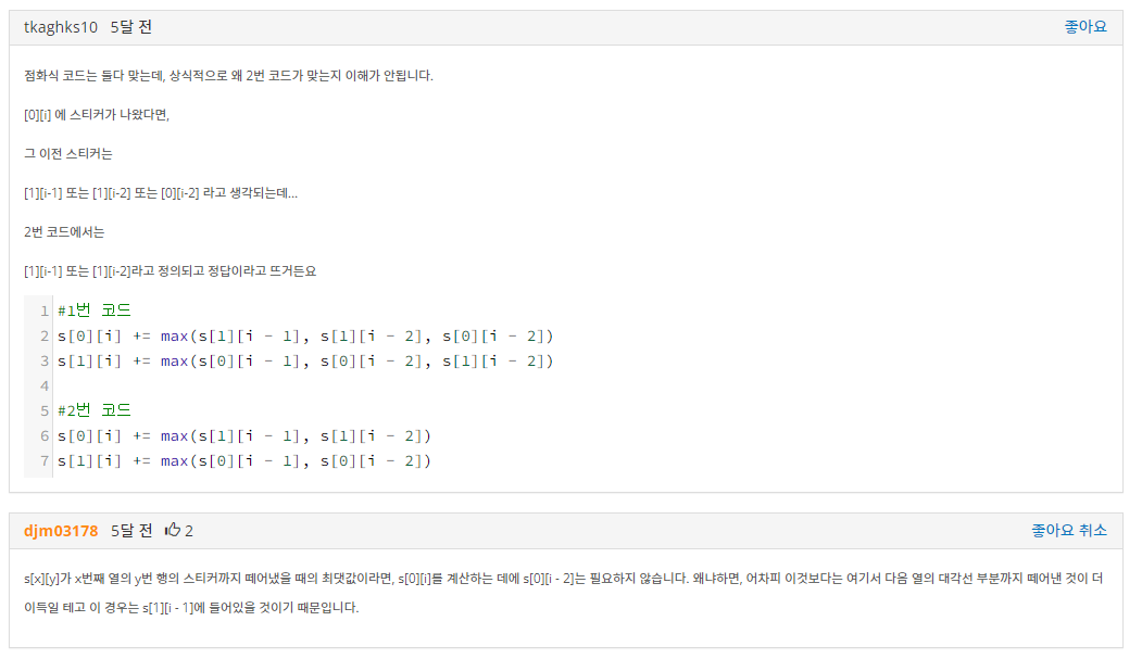 처음 문제를 풀었을 때 프로그래머스 스티커 문제처럼 간단하게 풀 수 있을 줄 알았다.