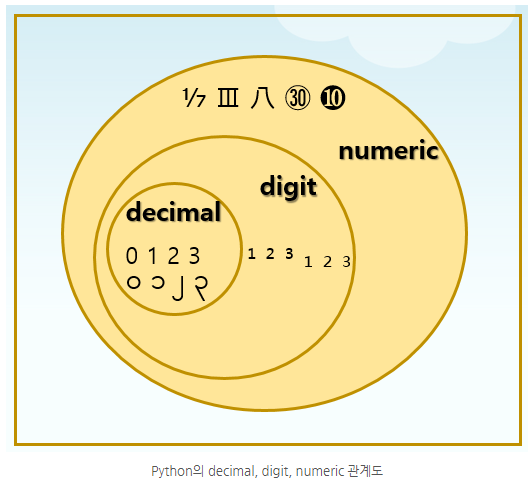 .isdecimal() 는 십진수를 표현하는 문자를 참거짓 판별해준다.