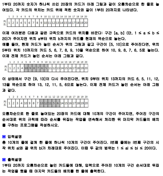 **카드 배치에 있어서 s부터e까지의 리스트를 선택한 뒤