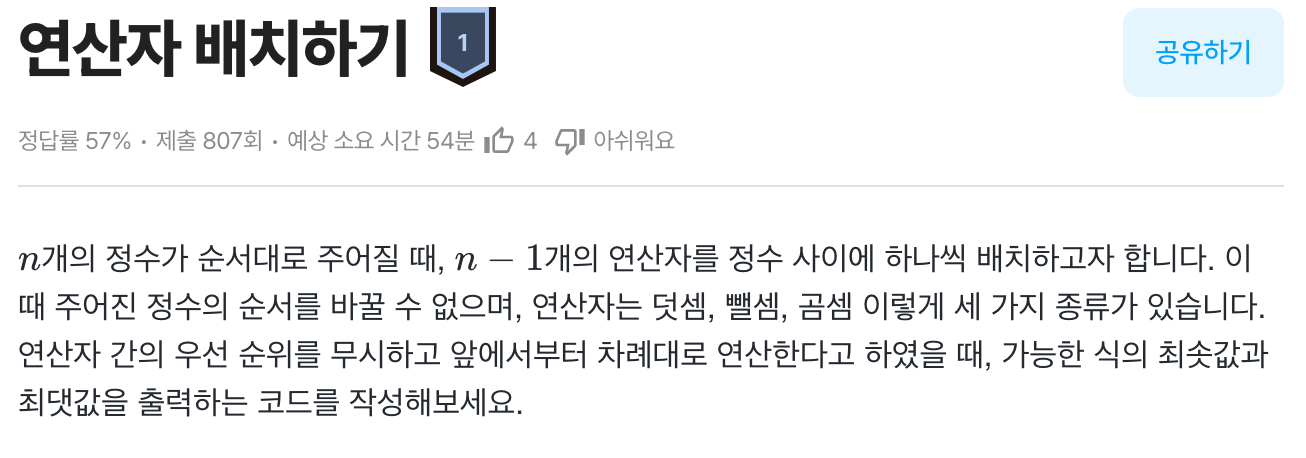 문제 제목: 연산자 배치하기