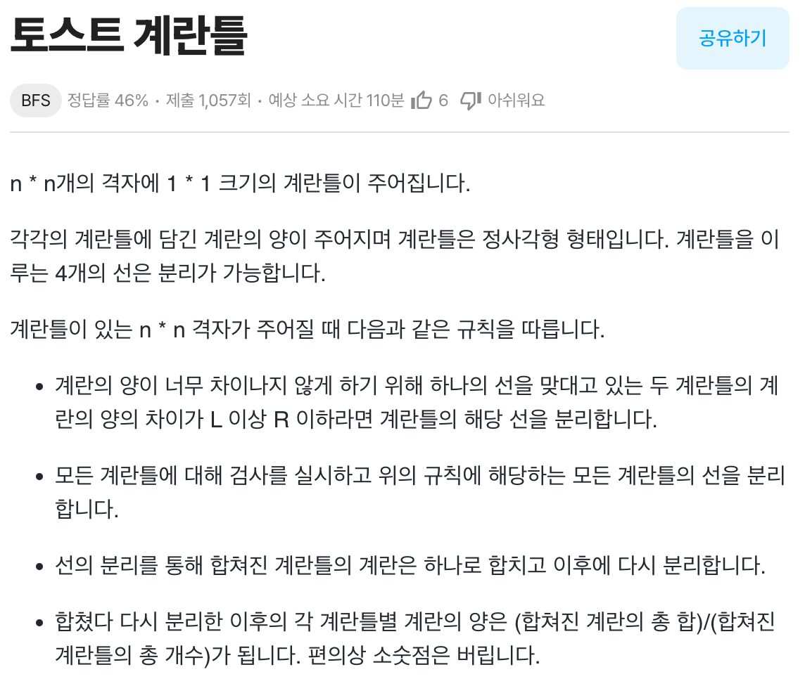 - 탐색한 칸의 계란을 평균으로 업데이트한다.