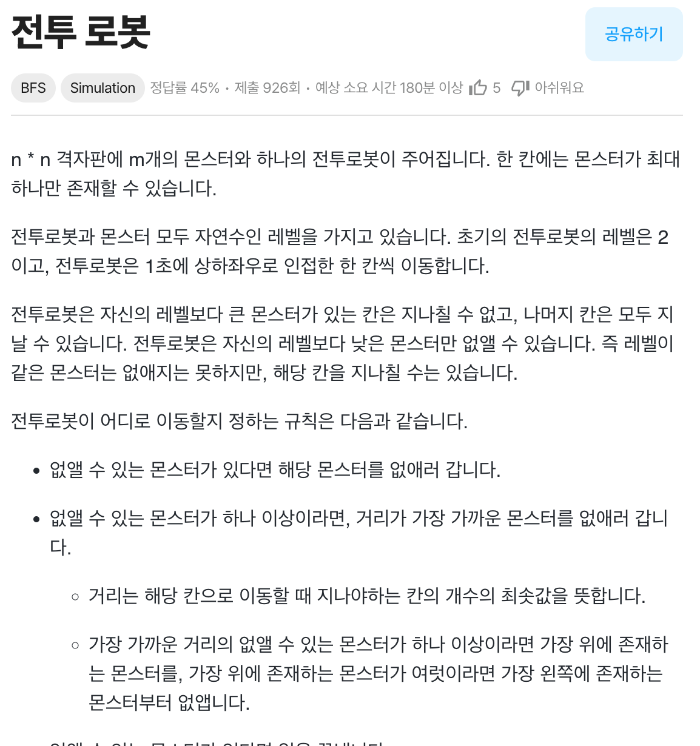 몬스터들의 좌표를 구해서 매번 돌면서 현재 위치에서 각각의 몬스터의 거리를 구하고 업데이트 하는 방식이면,