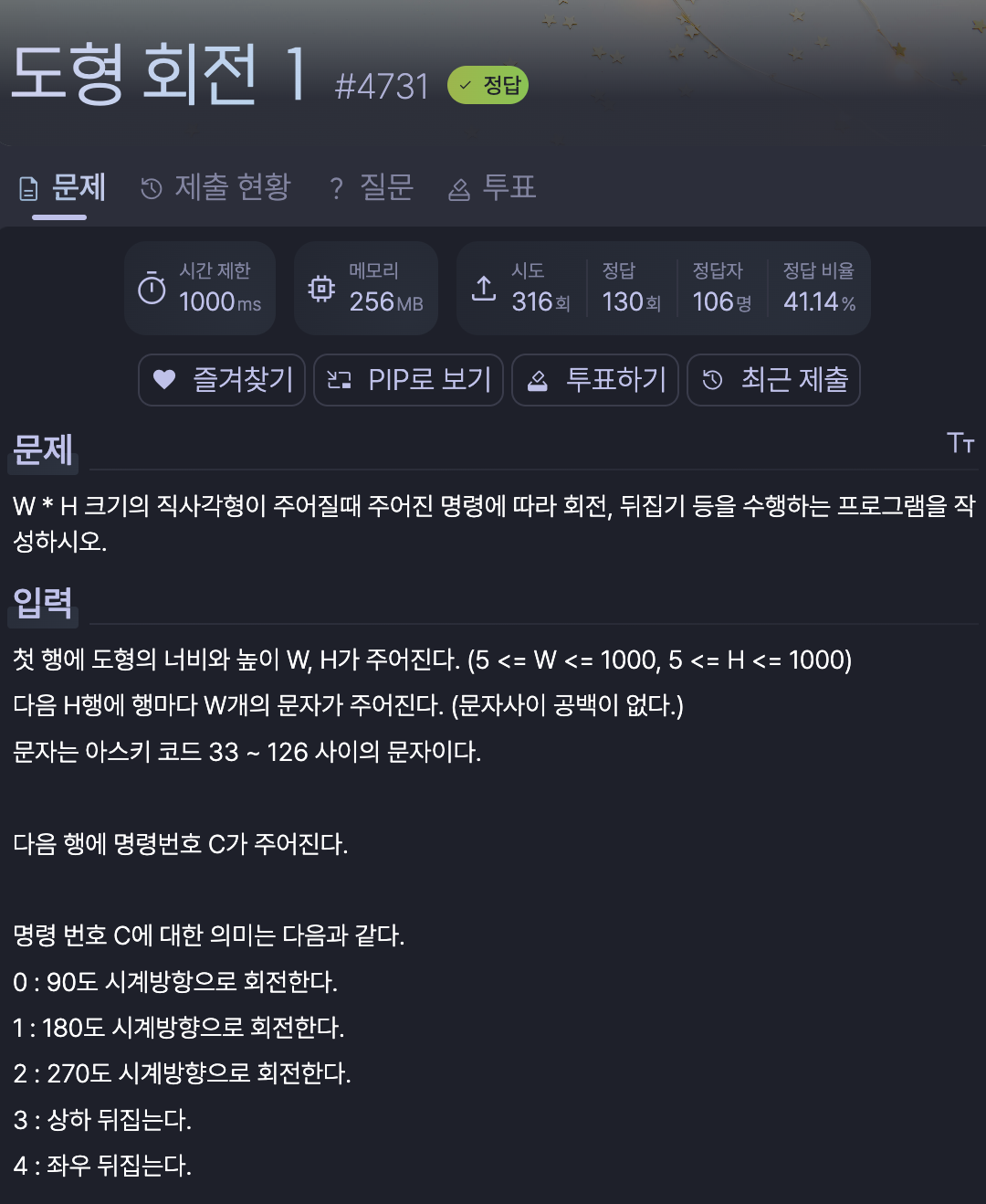 | 기본기 JUNGOL / 회전 / Python 파이썬 (1) | 2024.09.26 |