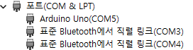 아두이노가 연결된 포트는 장치관리자>포트 에서 확인 가능
