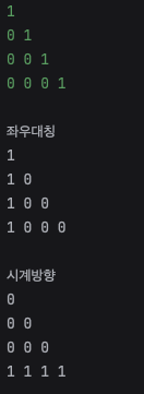 와 같이 maps[i][j] = maps[j][n-1-i] 를 적용하면 그냥 상관없을 줄 알았는데, 이렇게 적용하면 반시계방향 회전이된다.