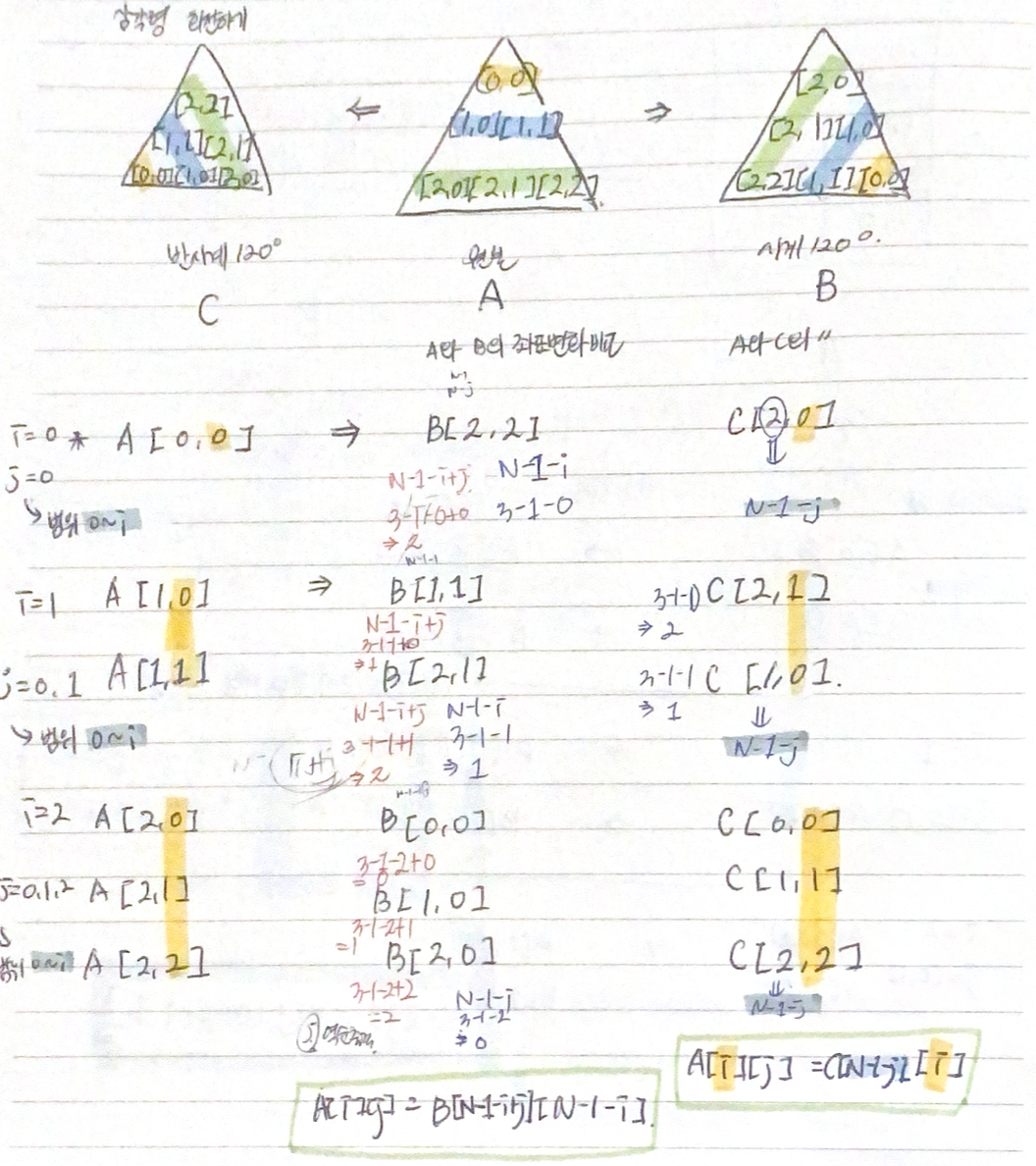 따라서 정삼각형은 반시계방향, 시계방향 회전일떄 각각 규칙을 구해주면 된다.