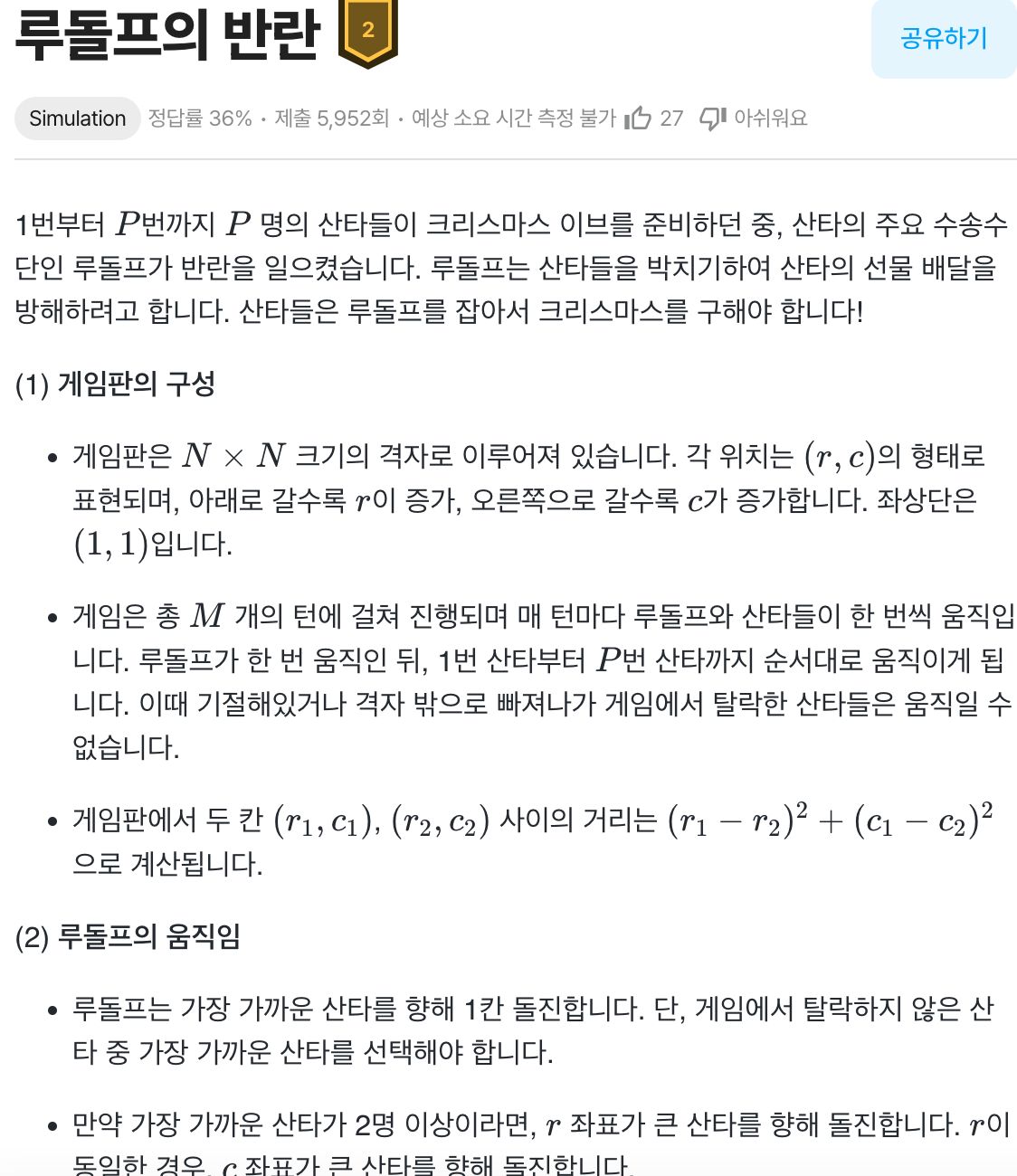 문제 제목: 루돌프의 반란