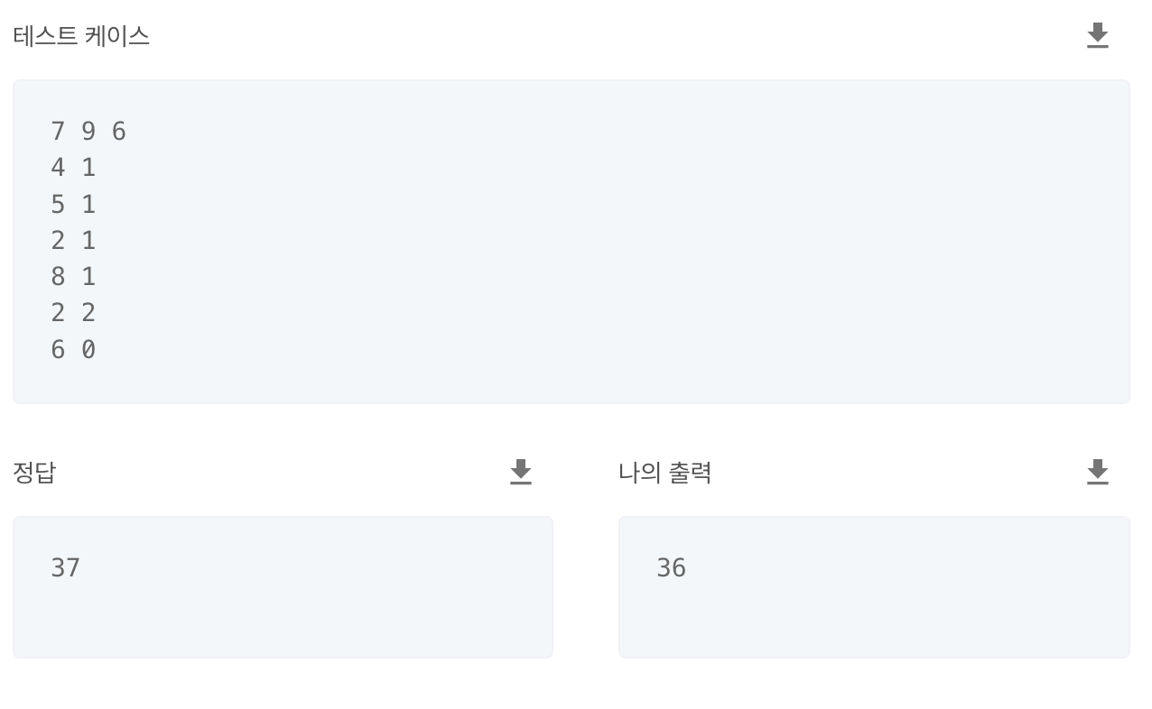 golem_point = {i+1:[1,golem[i][0]-1,golem[i][1]] for i in range(len(golem))} # 처음에는 1행에서 시작