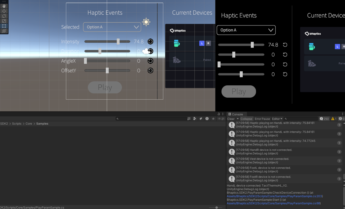 Debug.Log($"Haptic playing on {position} with intensity: {intensity}");