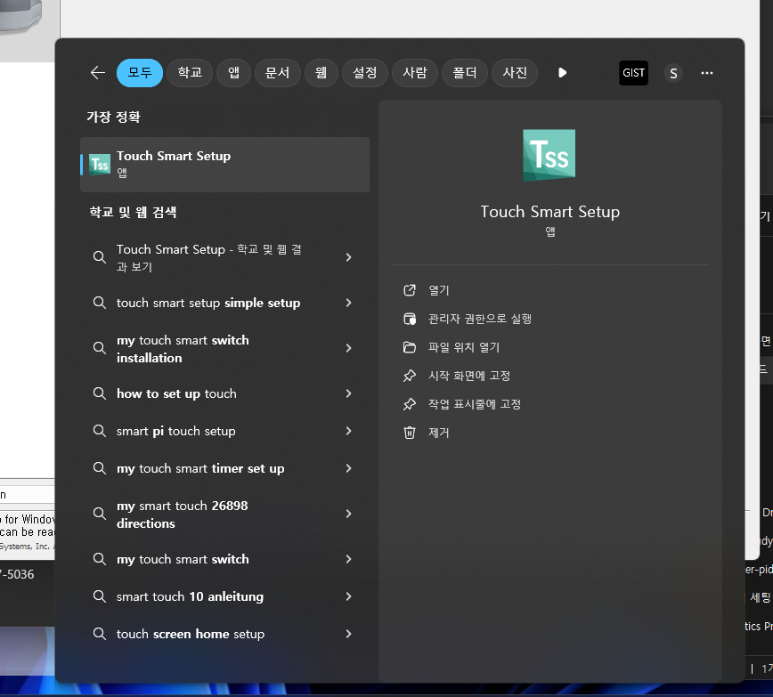 설치하고 재부팅 완료후 Touch Smart Setup 을 켜줍시다
