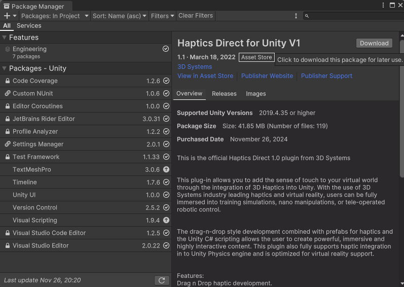 Use the Haptics Direct for Unity V1 from 3D Systems on your next project. Find this integration tool & more on the Unity Asset Store.