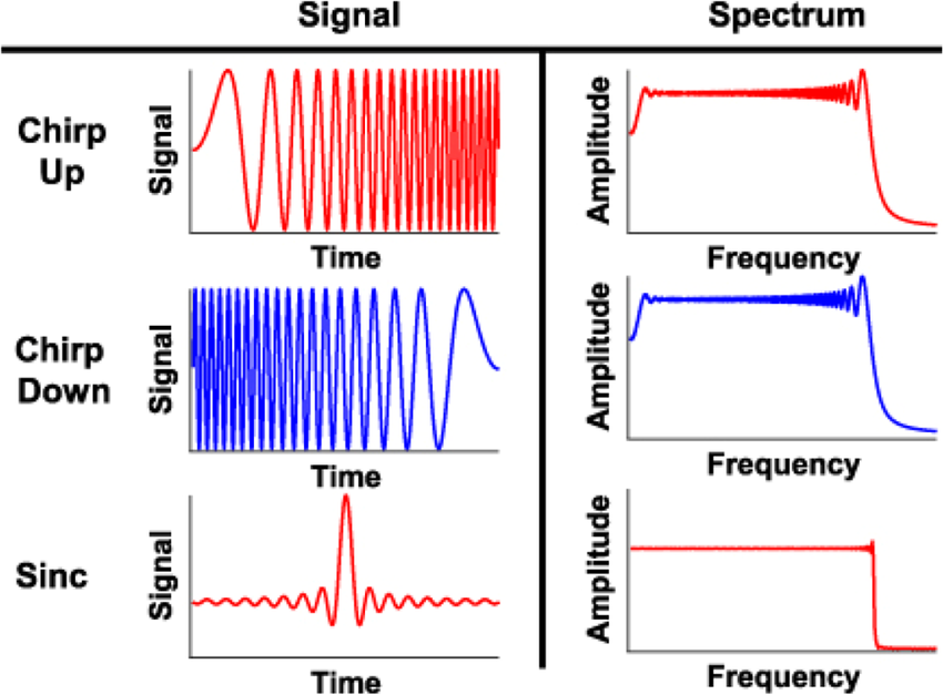 처프 신호는 주파수가 시간에 따라 변하는 신호로, 주파수 응답을 측정하는 데 사용된다.