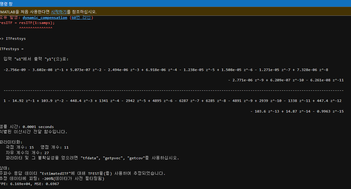2️⃣ 해결 방법: tfest() 함수의 전달 함수 차수 조정