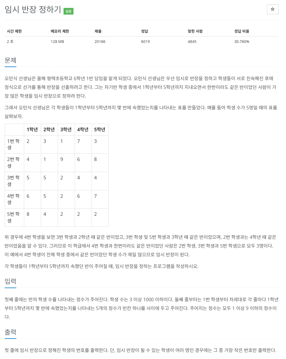 문제 사이트:https://www.acmicpc.net/problem/1268