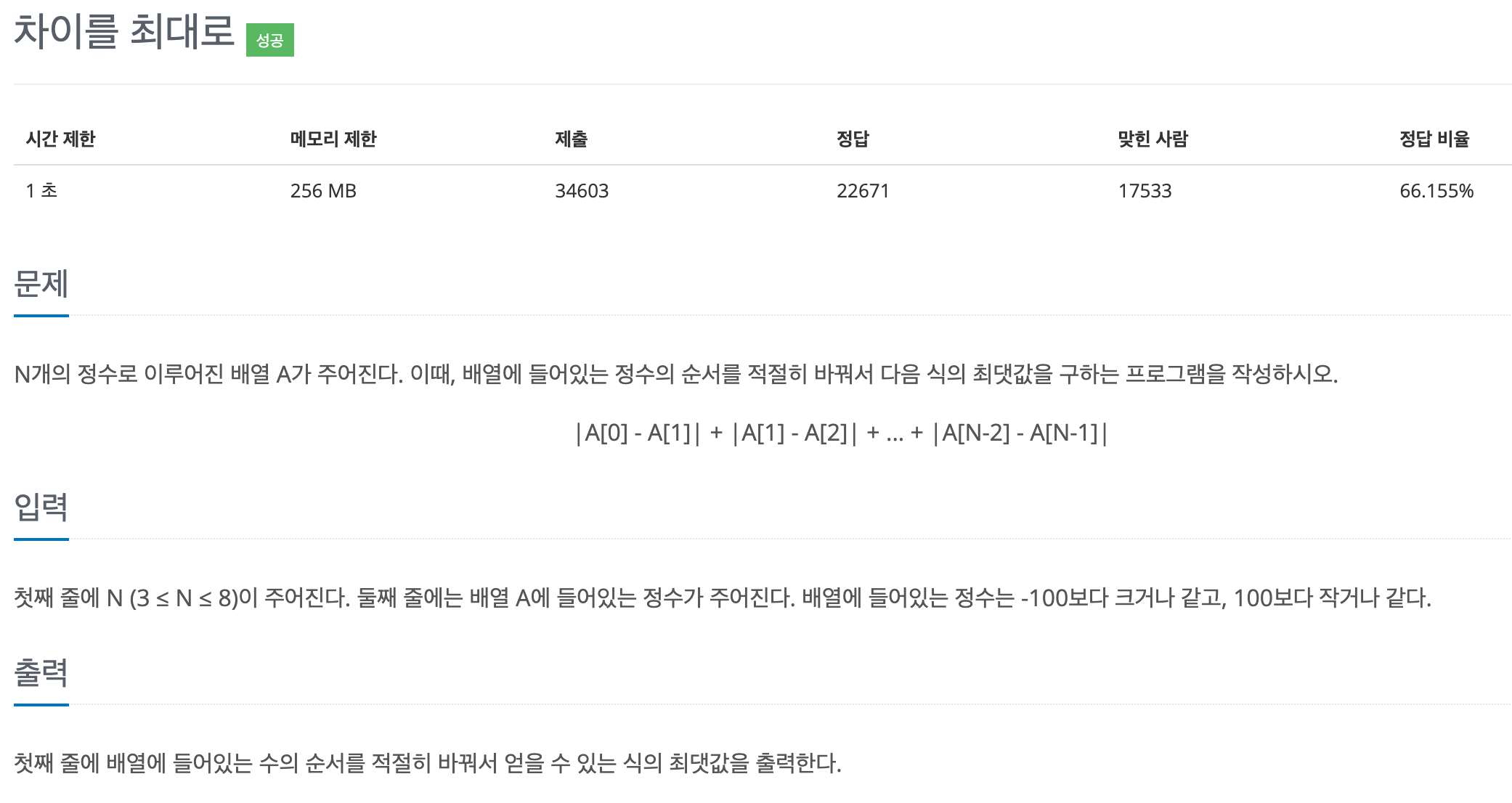 문제 제목: 10819번 차이를 최대로 - 순열