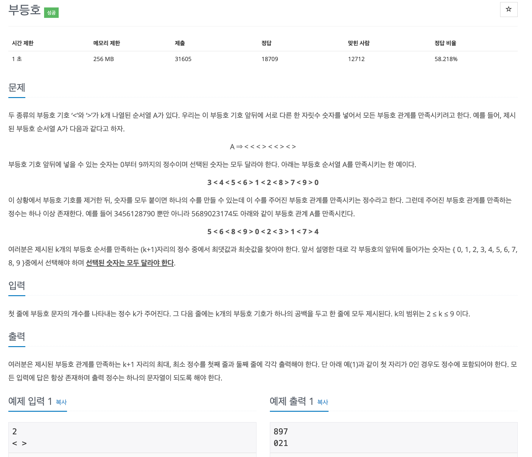 문제 사이트: https://www.acmicpc.net/problem/2529