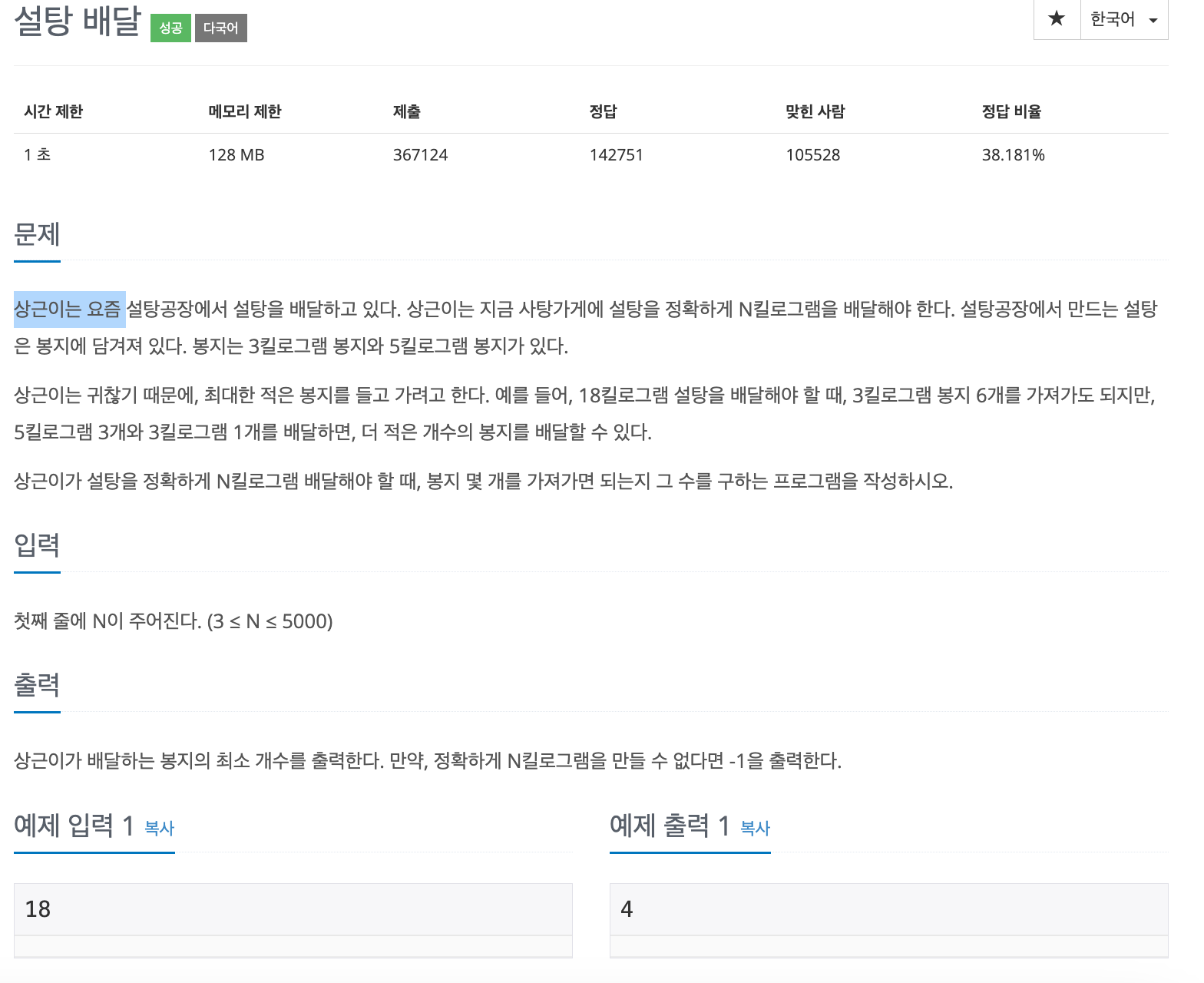 문제 사이트: https://www.acmicpc.net/problem/2839