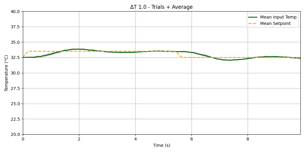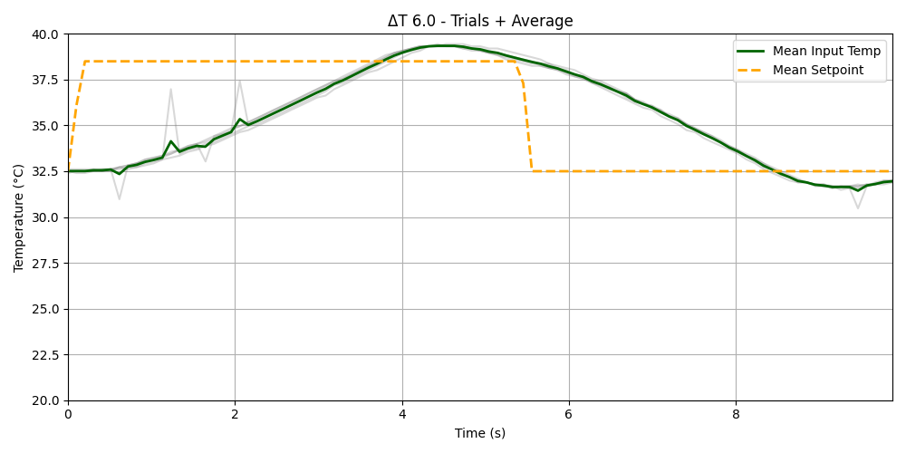 각 ΔT에 대해 평균 온도 및 목표 온도 곡선을 시각화하여 delta_3.0_trials_and_average_plot.png 형식으로 저장됩니다.
